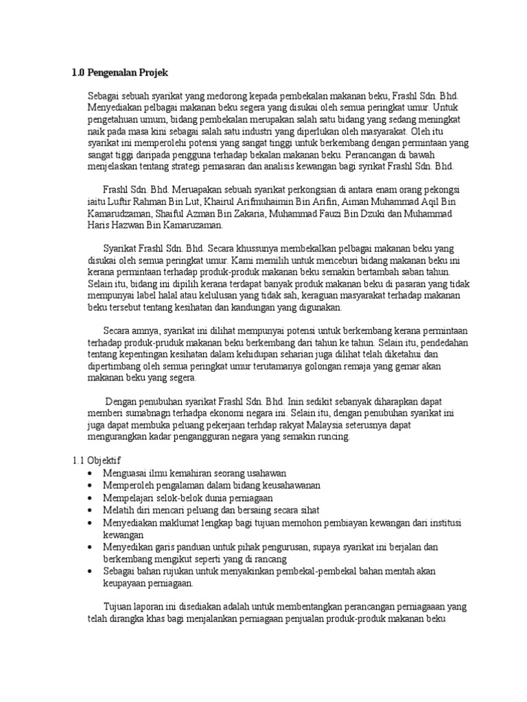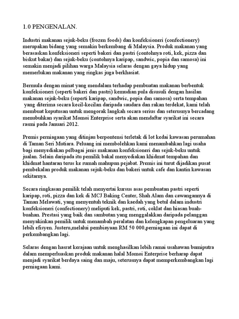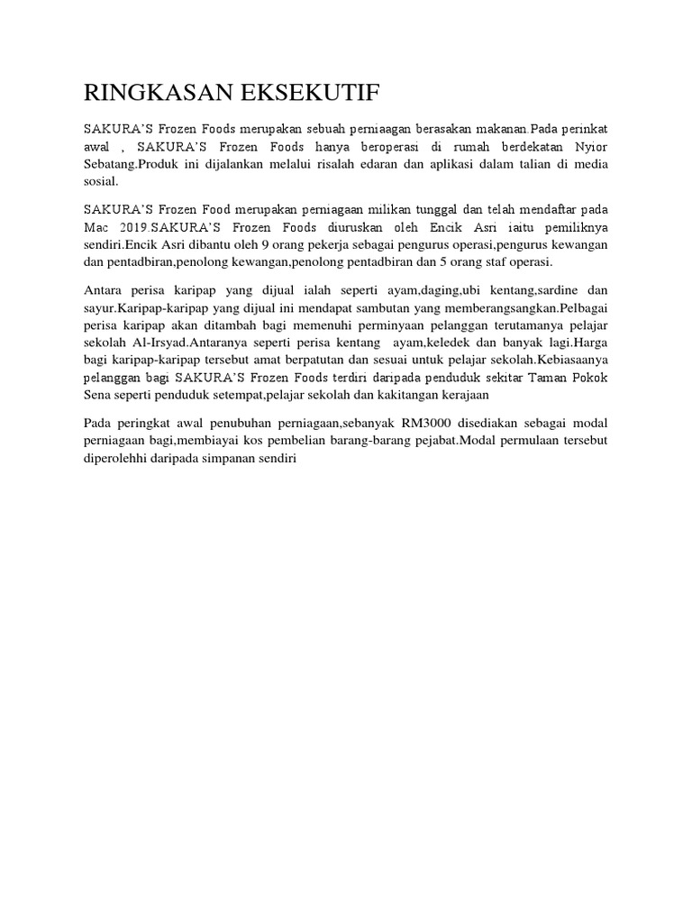 Doc Rancangan Perniagaan Frozen Food Oleh Hayrold Lim Khai Khian Fazil Marujal Profil Ringkas Joy Atie Academia Edu